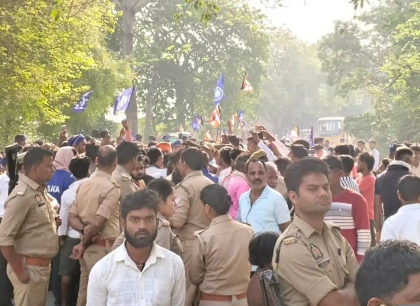 जौनपुर ,16 अप्रैल (हि. स.)। यूपी के जौनपुर में केराकत कोतवाली थाना अंतर्गत क्षेत्र के कुसरना बकुलिया गांव में डॉ. भीमराव अंबेडकर की प्रतिमा को अज्ञात असामाजिक तत्वों द्वारा खंडित किए जाने का मामला सामने आया है। यह घटना 15 अप्रैल देर रात की बताई जा रही है, जिसकी जानकारी गुरुवार सुबह ग्रामीणों को हुई।ग्रामीणों के अनुसार, प्रतिमा की आंख के ऊपरी हिस्से को क्षतिग्रस्त किया गया है। खास बात यह है कि जहां प्रतिमा स्थापित है, उसके ठीक सामने पुलिस चौकी मौजूद है, इसके बावजूद इस तरह की घटना ने सुरक्षा व्यवस्था पर सवाल खड़े कर दिए हैं।घटना की जानकारी मिलते ही गांव में आक्रोश फैल गया और बड़ी संख्या में लोग मौके पर जुट गए। नाराज ग्रामीणों ने कुछ समय के लिए सड़क जाम कर विरोध प्रदर्शन भी किया। लोगों का कहना है कि जिले में इस तरह की घटनाएं पहले भी हो चुकी हैं, जिससे असामाजिक तत्वों के हौसले बुलंद हैं।सूचना पर पहुंची पुलिस ने ग्रामीणों को समझाकर स्थिति को शांत कराया और जांच शुरू कर दी है। इस संबंध में क्षेत्राधिकारी केराकत अजीत कुमार चौहान ने बताया कि प्रतिमा क्षतिग्रस्त हुई है, जिसे जल्द ही बदलवाया जाएगा। साथ ही उन्होंने कहा कि मामले की गंभीरता से जांच की जा रही है और दोषियों के खिलाफ सख्त कार्रवाई की जाएगी।फिलहाल मौके पर शांति व्यवस्था कायम है और पुलिस स्थिति पर नजर बनाए हुए है।