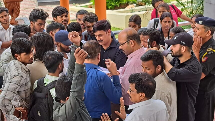 जौनपुर,04 अप्रैल (हि. स.)। यूपी के जौनपुर स्थित वीर बहादुर सिंह पूर्वांचल विश्वविद्यालय में शनिवार को टीडी कॉलेज के बीएससी तृतीय वर्ष के छात्रों ने अधूरे परीक्षा परिणाम के विरोध में जोरदार प्रदर्शन किया। करीब डेढ़ सौ छात्रों ने कुलपति कार्यालय के सामने धरना देते हुए विश्वविद्यालय प्रशासन के खिलाफ नारेबाजी की और आक्रोश में कार्यालय का दरवाजा तोड़ने का प्रयास भी किया।प्रदर्शन कर रहे छात्र बीएससी तृतीय वर्ष के पांचवें सेमेस्टर के थे। उनका आरोप था कि हाल ही में घोषित परीक्षा परिणाम में गंभीर त्रुटियां हैं, जिससे सैकड़ों छात्रों का भविष्य प्रभावित हो रहा है। छात्रों के अनुसार, सत्र 2025-26 के परिणाम में जीव विज्ञान, वनस्पति विज्ञान, भौतिक विज्ञान, रसायन विज्ञान और गणित जैसे विषयों में लगभग 350 छात्रों के परिणाम अधूरे या गलत घोषित किए गए हैं।छात्रों ने बताया कि इस समस्या को लेकर वे पहले भी कई बार विश्वविद्यालय प्रशासन को अवगत करा चुके हैं, लेकिन कोई ठोस कार्रवाई नहीं की गई। इसी उपेक्षा से नाराज होकर उन्हें प्रदर्शन के लिए मजबूर होना पड़ा। प्रदर्शन के दौरान छात्रों ने कुलपति कार्यालय के दरवाजे को पीटते हुए अपनी नाराजगी जाहिर की, जिससे मौके पर तनावपूर्ण स्थिति बन गई।सूचना मिलने पर विश्वविद्यालय प्रशासन हरकत में आया। उपकुलसचिव अजीत प्रताप सिंह, प्रो. अजय प्रताप सिंह, डॉ. दिग्विजय सिंह राठौर और डॉ. प्रवीण सिंह समेत अन्य अधिकारी मौके पर पहुंचे और छात्रों को समझाने का प्रयास किया। हालांकि छात्र अपनी मांगों पर अड़े रहे और कुलपति व परीक्षा नियंत्रक से तत्काल मुलाकात की मांग करते रहे। काफी देर तक चले गतिरोध के बाद अधिकारियों ने मामले की जांच कर शीघ्र समाधान का आश्वासन दिया। इसके बाद देर शाम छात्र शांत हुए और अपना धरना समाप्त कर दिया। छात्रों ने चेतावनी दी है कि यदि जल्द ही उनके परिणामों में सुधार नहीं किया गया, तो वे फिर से उग्र आंदोलन करने को बाध्य होंगे।