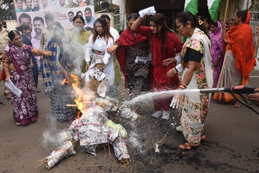 भोपाल, 08 अप्रैल (हि.स.)। मध्य प्रदेश महिला कांग्रेस ने बुधवार काे प्रदेश कांग्रेस कमेटी (पीसीसी) कार्यालय के बाहर जोरदार प्रदर्शन करते हुए असम के मुख्यमंत्री द्वारा कांग्रेस के राष्ट्रीय अध्यक्ष मल्लिकार्जुन खड़गे पर की गई कथित आपत्तिजनक टिप्पणी के खिलाफ आक्रोश व्यक्त किया। विरोध स्वरूप मुख्यमंत्री का पुतला दहन किया गया और नारेबाजी के जरिए कड़ा संदेश दिया गया।