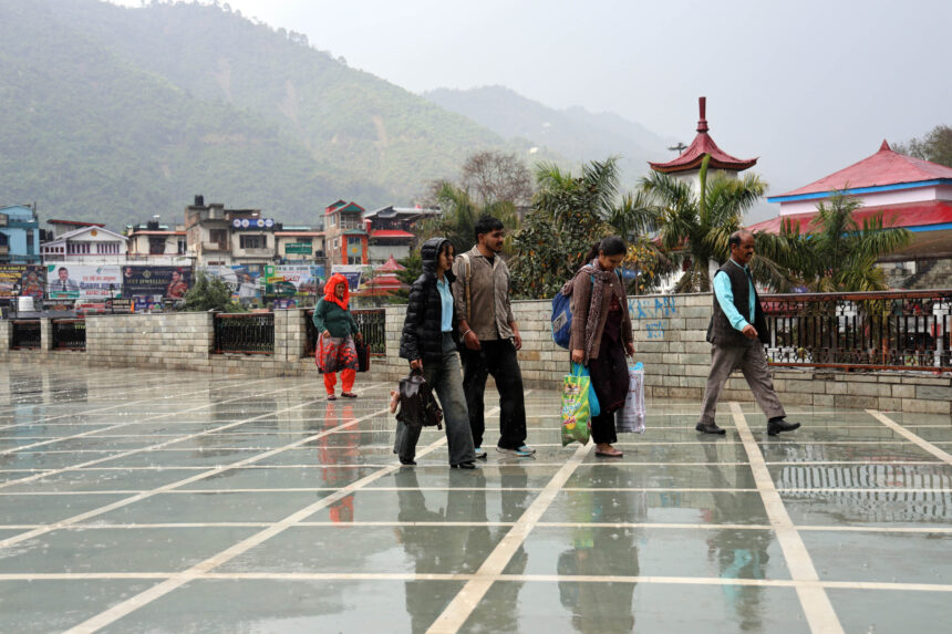 फोटोः मंडी में बारिश के बीच गंतव्य की ओर जाते लोग