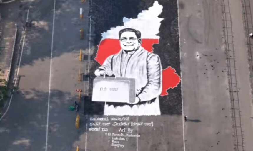 कर्नाटक के मानचित्र की आकृति के भीतर मुख्यमंत्री को बजट दस्तावेज हाथ में लिए हुए दर्शाया गया है। 17वां बजट पेश करने जा रहे मुख्यमंत्री को उनके गृह जिले में मिल रहे समर्थन से राज्यभर में बजट को लेकर उत्सुकता बढ़ गई है।