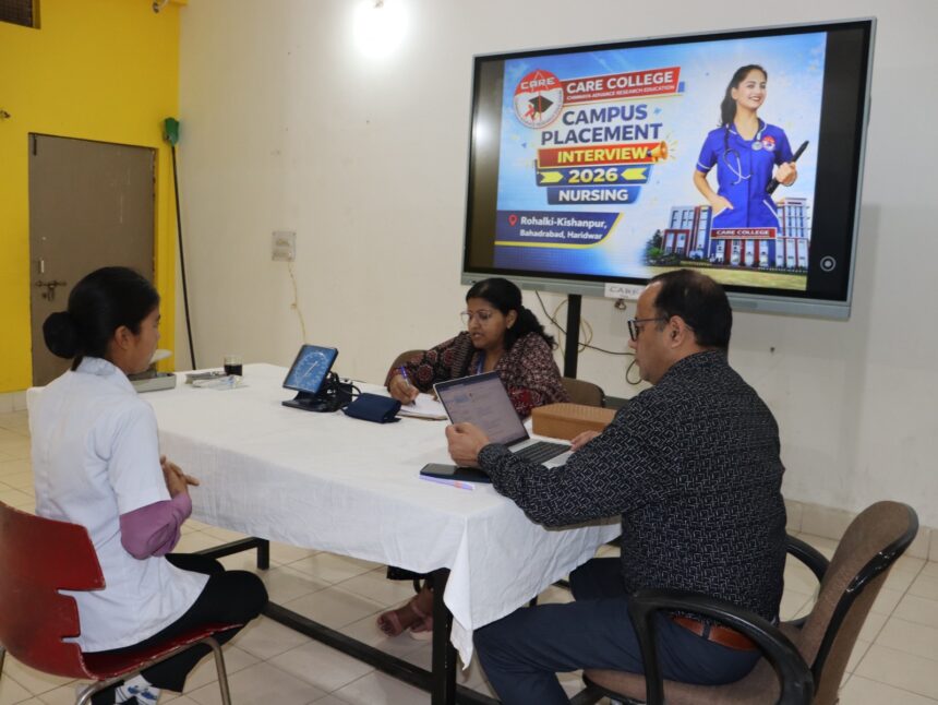 हरिद्वार, 01 अप्रैल (हि.स.)। हरिद्वार के प्रतिष्टित केयर कॉलेज ऑफ नर्सिंग में विद्यार्थियों के उज्ज्वल भविष्य को ध्यान में रखते हुए एक महत्वपूर्ण प्लेसमेंट ड्राइव का आयोजन किया गया। इस अवसर पर दिल्ली स्थित मैक्स सुपरस्पेशलिटी हॉस्पिटल की टीम कॉलेज परिसर में पहुंची और अंतिम वर्ष के विद्यार्थियों का साक्षात्कार लिया।