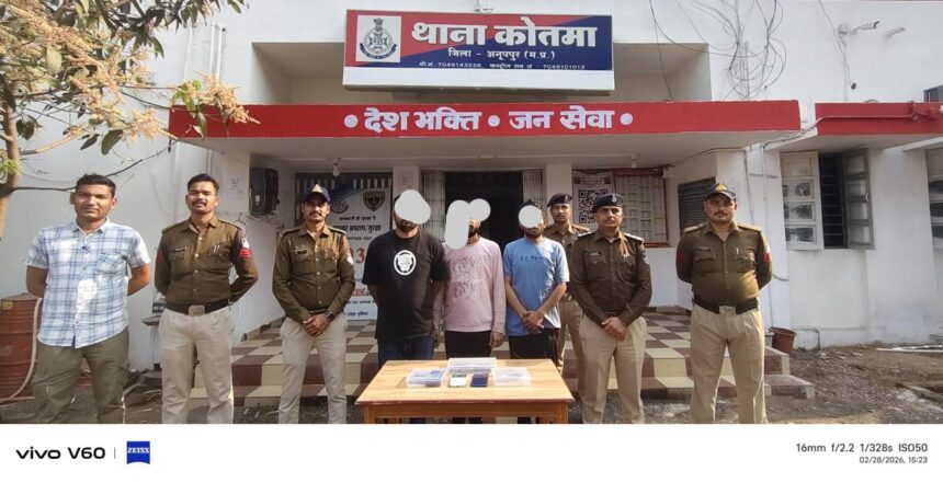अनूपपुर, 28 फ़रवरी (हि.स.)।मध्य प्रदेश के अनूपपुर जिले के कोतमा में पुलिस ने सरकारी योजनाओं के नाम पर ग्रामीणों से धोखाधड़ी करने वाले गिरोह का भंडाफोड़ किया है। गिरोह ग्रामीणों के दस्तावेजों का दुरुपयोग कर उनके नाम से बैंक खाते खुलवाता और फिर उन्हीं खातों से अवैध लेनदेन व साइबर ठगी को अंजाम देता था। पुलिस ने पांच लोगों के खिलाफ प्रकरण दर्ज कर तीन आरोपितों को गिरफ्तार कर लिया है। शनिवार को न्यायालय के आदेश पर उन्हें जेल भेज दिया गया, जबकि दो अन्य की तलाश जारी है।