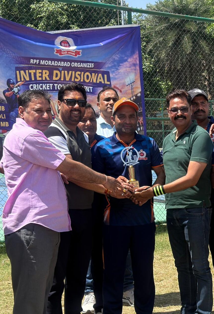 मुरादाबाद, 10 अप्रैल (हि.स.)। मुरादाबाद रेल मंडल के तत्वावधान में रेलवे स्टेडियम में खेली जा रही अंतरमंडलीय रेलवे सुरक्षा बल क्रिकेट प्रतियोगिता में शुक्रवार को पहला सेमीफाइनल मैच रेल कोच फैक्ट्री कपूरथला व जम्मू रेल मंडल की टीम के बीच खेला गया। दूसरा सेमीफाइनल दिल्ली रेल मंडल व मुरादाबाद रेल मंडल के बीच हुआ। जिसमें क्रमशः जम्मू रेल मंडल और मुरादाबाद रेल मंडल की टीम ने जीत हासिल की।