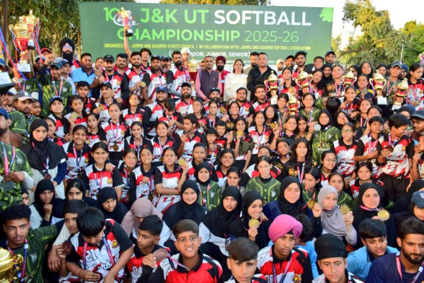 जम्मू, 01 अप्रैल (हि.स.)। जम्मू के जीजीएम साइंस कॉलेज ग्राउंड में आयोजित सॉफ्टबॉल जे&के चैंपियनशिप 2025–26 का बुधवार को समापन हो गया। जम्मू और कश्मीर खेल परिषद द्वारा आयोजित इस प्रतियोगिता में पूरे जम्मू-कश्मीर से करीब 400 खिलाड़ियों ने सब-जूनियर, जूनियर और सीनियर वर्गों में हिस्सा लिया। समापन समारोह में मंडलायुक्त जम्मू रमेश कुमार मुख्य अतिथि के रूप में उपस्थित रहे। इस अवसर पर जेएन्डके स्पोर्ट्स काउंसिल के सचिव सहित जम्मू और कश्मीर सॉफ्टबॉल एसोसिएशन के प्रतिनिधि और अन्य अधिकारी भी मौजूद रहे।