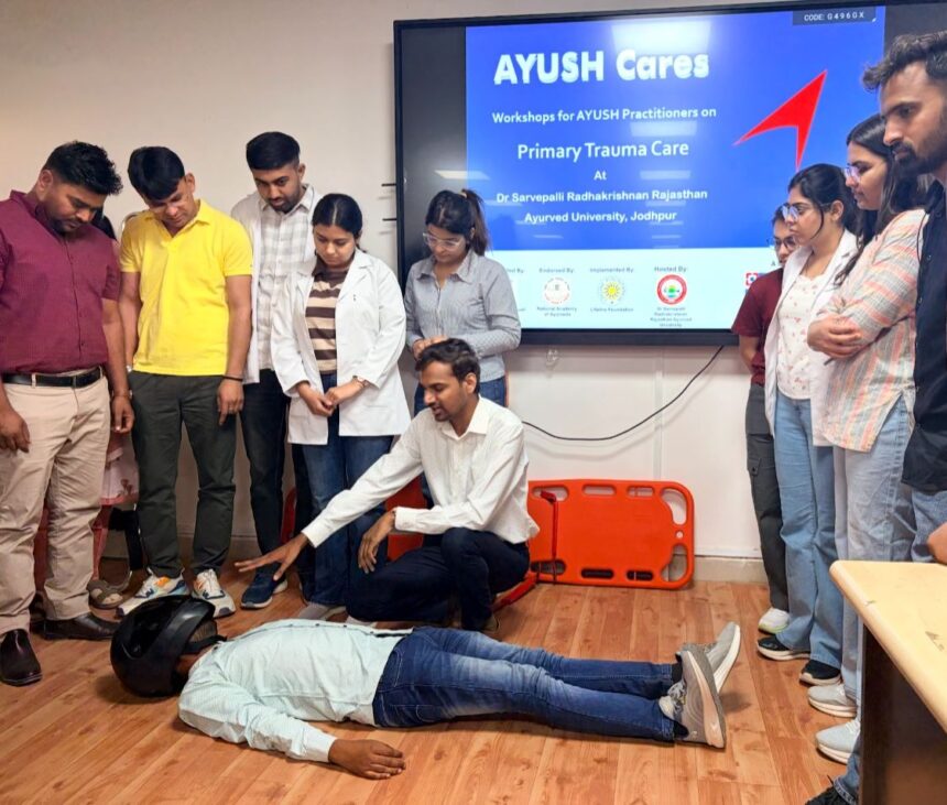 जीवनरक्षक तकनीक व प्राथमिक चिकित्सा का दिया प्रशिक्षणजोधपुर, 10 मार्च (हि.स.)। डॉ. सर्वपल्ली राधाकृष्णन राजस्थान आयुर्वेद विश्वविद्यालय के सेमिनार हॉल में एक दिवसीय ट्रॉमा केयर कार्यशाला का आयोजन किया गया। यह कार्यशाला लाइफलाइन फाउंडेशन वडोदरा तथा विश्वविद्यालय के संयुक्त तत्वावधान में आयोजित हुई, जिसमें आयुष मंत्रालय, भारत सरकार, राष्ट्रीय आयुर्वेद विद्यापीठ, दिल्ली तथा एचडीएफसी बैंक का विशेष सहयोग रहा।