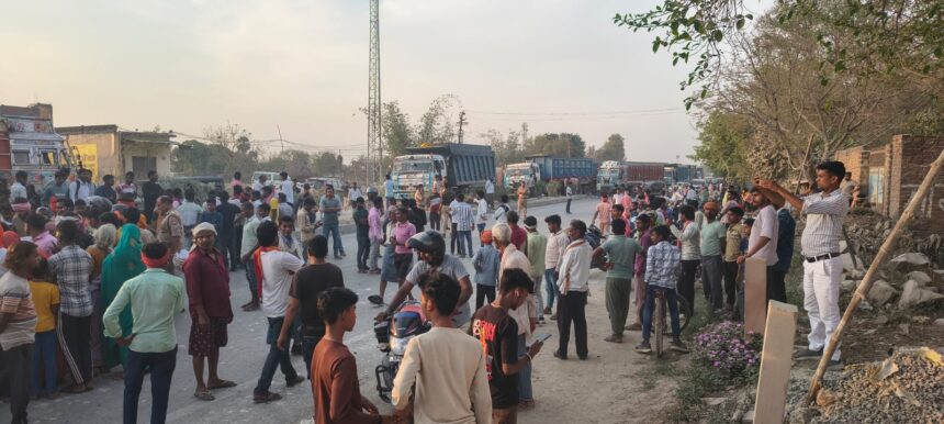 – ग्रामीणों ने रोड पर ब्रेकर बनवाने की मांग को लेकर लगाया जाम