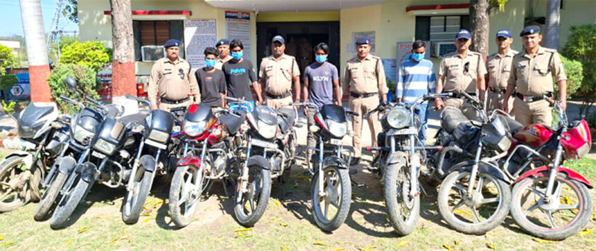 हरिद्वार, 06 अप्रैल (हि.स.)। वरिष्ठ पुलिस अधीक्षक नवनीत सिंह के निर्देशन में जनपद में अपराधियों के खिलाफ चलाए जा रहे अभियान के तहत कोतवाली रानीपुर पुलिस को बड़ी सफलता मिली है। पुलिस ने कार्रवाई करते हुए 04 वाहन चोरों को गिरफ्तार कर उनके कब्जे से चोरी की 10 मोटर साइकिलें बरामद की हैं। पुलिस के अनुसार गिरफ्तार चारों आरोपित नशे के आदी हैं और अपने नशे की पूर्ति व शौक पूरे करने के लिए वाहन चोरी की घटनाओं को अंजाम देते थे।