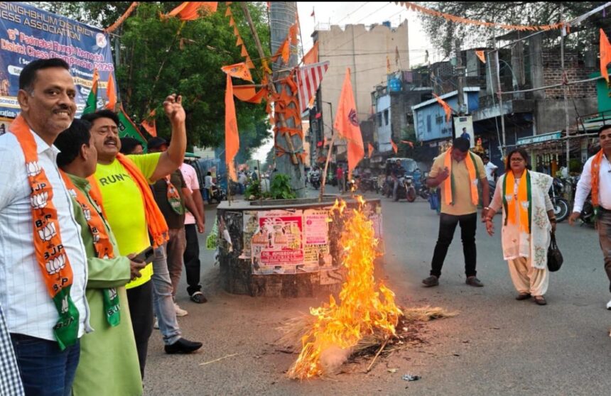 पश्चिमी सिंहभूम, 12 अप्रैल (हि.स.)। उत्पाद सिपाही बहाली परीक्षा में कथित प्रश्न पत्र लीक और भ्रष्टाचार के आरोपों को लेकर रविवार को चाईबासा में विरोध प्रदर्शन तेज हो गया। पश्चिमी सिंहभूम जिले के पोस्ट ऑफिस चौक पर बड़ी संख्या में जुटे लोगों ने सरकार के खिलाफ नारेबाजी की और मुख्यमंत्री का पुतला दहन कर आक्रोश जताया। इस प्रदर्शन का नेतृत्व जिला अध्यक्ष गीता बालमुचू ने किया।