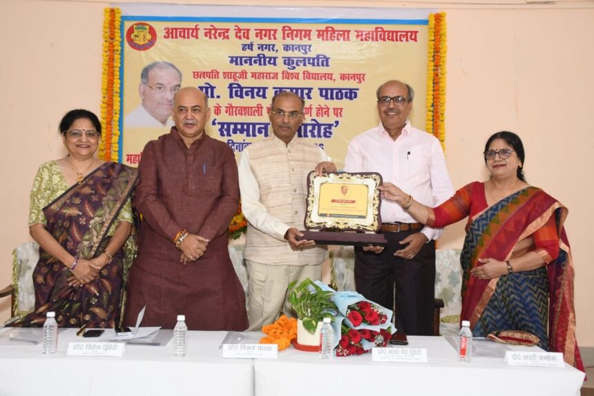 आचार्य नरेंद्र देव नगर निगम महिला महाविद्यालय, हरजेंदर नगर में आज छत्रपति शाहू जी महाराज विश्वविद्यालय (सीएसजेएमयू) के कुलपति प्रो. विनय कुमार पाठक के कार्यकाल के पांच वर्ष पूर्ण होने पर सम्मान समारोह आयोजित किया गया। कार्यक्रम में मुख्य अतिथि के रूप में कुलपति स्वयं उपस्थित रहे, जबकि विशिष्ट अतिथि के रूप में प्रो. राजेश कुमार द्विवेदी एवं प्रो. विवेक द्विवेदी शामिल हुए।