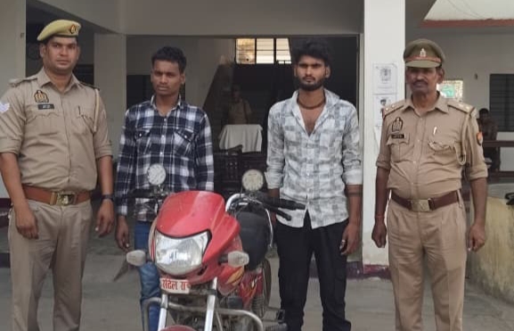 कोतवाली प्रभारी निरीक्षक अनूप सिंह ने शनिवार को बताया कि अज्ञात चोरों द्वारा एक व्यक्ति की हीरो एचएफ डीलक्स मोटरसाइकिल चोरी किए जाने की रिपोर्ट दर्ज कराई गई थी। शिकायत मिलते ही पुलिस ने तत्परता दिखाते हुए मामला दर्ज कर जांच शुरू की और संदिग्धों की तलाश में जुट गई। जांच के दौरान पुलिस टीम को मुखबिर से महत्वपूर्ण सूचना प्राप्त हुई, जिसके आधार पर मल्होवां रोड बाईपास पुलिया के पास घेराबंदी कर दो संदिग्धों को गिरफ्तार कर लिया गया। पूछताछ में आरोपियों ने चोरी की वारदात स्वीकार कर ली। उनकी पहचान राजेन्द्र विश्वकर्मा निवासी चकअमरपुरा जिगनी थाना चिकासी तथा दीपक श्रीवास उर्फ बन्टा निवासी पराखेड़ा थाना राठ के रूप में हुई है। पुलिस ने दोनों अभियुक्तों के कब्जे से चोरी की गई बाइक बरामद कर ली है। आवश्यक कानूनी कार्रवाई पूरी करने के बाद दोनों को न्यायालय में पेश कर जेल भेज दिया गया।