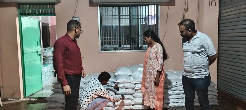 प्राप्त जानकारी के अनुसार, अभिहित अधिकारी अक्षय कुमार सोनी के मार्गदर्शन में खाद्य सुरक्षा विभाग की टीम ने विकासखंड सिमगा अंतर्गत ग्राम केसदा स्थित सिद्धि विनायक बेवरेज वाटर प्लांट का निरीक्षण किया। निरीक्षण के दौरान विक्रय हेतु तैयार 250 मिली पानी पाउच के लेबल में उत्पाद तिथि व बैच नम्बर नही पाया गया जिस पर कार्यवाही करते हुये 200 बोरी (प्रत्येक में 40 नग) पानी पाउच विधिवत जब्त किया गया। साथ ही विधिक नमूना लेकर जाँच हेतु राज्य खाद्य परीक्षण प्रयोगशाला रायपुर भेजा गया।