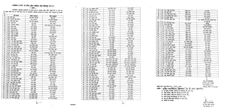 जारी स्थानांतरण सूची के अनुसार सिविल लाइन, सरकंडा, सिटी कोतवाली, तोरवा, सकरी, रतनपुर, चकरभाठा, कोनी, हिर्री, तखतपुर और पचपेड़ी सहित कई थानों में पदस्थ पुलिसकर्मियों का तबादला किया गया है। इनमें से कई पुलिसकर्मियों को अन्य थानों में भेजा गया है, जबकि कुछ को आरक्षित केंद्र और अलग-अलग इकाइयों में नई जिम्मेदारी दी गई है। आदेश के मुताबिक सिविल लाइन, सरकंडा और सिटी कोतवाली जैसे प्रमुख और व्यस्त थानों से बड़ी संख्या में पुलिसकर्मियों को अन्य स्थानों पर भेजा गया है। इस स्थानांतरण से न केवल भ्रष्टाचार की शिकायतों पर लगाम लगने की उम्मीद है, बल्कि नए पुलिसकर्मियों के आने से पेंडिंग मामलों के निपटारे में भी तेजी आएगी।