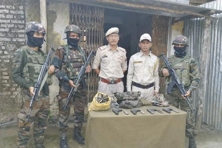 मणिपुर पुलिस मुख्यालय द्वारा आज रात दी गई जानकारी के अनुसार मौके से हथियार, गोला-बारूद और आईईडी बरामद किए गए, जिसमें चार 9 एमएम की पिस्तौल, चार 9 एमएम पिस्तौल की मैगज़ीन, 12 आईईडी, (जिन्हें मौके पर ही नष्ट कर दिया गया), कपड़ों का सामान और यूनिफॉर्म, जिसमें एक कॉम्बैट शर्ट, दो जोड़ी कॉम्बैट पैंट, दो कॉम्बैट जैकेट और एक कॉम्बैट कैप शामिल है, और एक कॉम्बैट हैंडबैग शामिल हैं।
