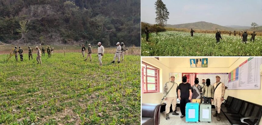 वहीं एक अन्य अभियान में सुरक्षा बलों और वन विभाग ने उखरुल जिले के लिटान थानांतर्गत सिनाकेइथेई इलाके में लगभग 25 एकड़ में फैली अवैध अफीम की खेती को नष्ट किया गया।