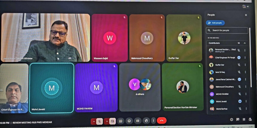 जम्मू, 22 फरवरी (हि.स.)। कैबिनेट मंत्री जावेद राणा ने पीडब्ल्यूडी डिवीजन मेंढर द्वारा संचालित विकास कार्यों की प्रगति की समीक्षा हेतु एक वर्चुअल बैठक की अध्यक्षता की। बैठक में मुख्य अभियंता पीडब्ल्यू (आर एंड बी) पीर पंजाल, कार्यकारी अभियंता पीडब्ल्यू (आर एंड बी) मेंढर सहित संबंधित अधिकारी उपस्थित रहे।