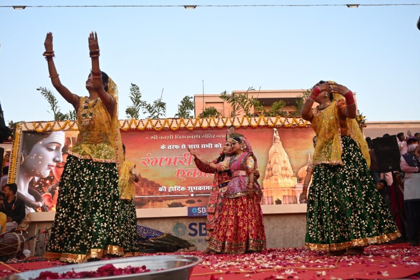 वाराणसी,27 फरवरी (हि.स.)। रंगभरी एकादशी पर शुक्रवार को श्री काशी विश्वनाथ धाम के शंकराचार्य चौक स्थित ‘शिवार्चनम्’ मंच पर आयोजित सांस्कृतिक संध्या में ब्रज के रसियारों के ‘रासनृत्य’ व फूलों से होली खेलते देख शिवभक्त गदगद दिखे। सांस्कृतिक संध्या में ब्रज के प्रतिष्ठित कलाकारों ने दिव्य एवं भावपूर्ण प्रस्तुतियाँ दी। भक्तिमय प्रस्तुतियों, शास्त्रीय संगीत एवं आध्यात्मिक नृत्य-नाटिकाओं की प्रस्तुति आकर्षण बनी रही। इसके पहले सांस्कृतिक संध्या का शुभारंभ वैदिक मंत्रोच्चार एवं दीप प्रज्वलन के साथ हुआ। कलाकारों ने शिव-भक्ति पर आधारित भजन एवं स्तुतियाँ प्रस्तुत कर काशी की आध्यात्मिक परंपरा को सजीव किया। ब्रज के रसियारों द्वारा ‘रास’ एवं ‘फूलों की होली’ का भव्य आयोजन विशेष आकर्षण का केंद्र रहा। कार्यक्रम में सुनील प्रसन्ना एवं उनके सह-कलाकारों ने मनोहारी शहनाई वादन प्रस्तुत किया । पूनम श्रीवास्तव ने भावपूर्ण भजन गायन से श्रद्धालुओं को मंत्रमुग्ध कर दिया। श्री काशी रास विद्या वृंद, शिवम सिंह, राधिका मिश्रा, शुभम सृतिक, वृष्टि चक्रवर्ती, राजन तिवारी एवं प्रिया सिंह ने अपनी उत्कृष्ट प्रस्तुतियों से सांस्कृतिक संध्या को नई उंचाई पर पहुंचाया। कार्यक्रम के दौरान “हर-हर महादेव” के जयघोष से सम्पूर्ण धाम परिसर गुंजायमान रहा। कार्यक्रम के अंत में देश एवं प्रदेश की सुख-समृद्धि, शांति एवं जनकल्याण की मंगलकामना की गई।