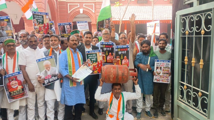 जौनपुर, 16 मार्च (हि.स.)। उत्तर प्रदेश के जनपद जौनपुर में रसोई गैस सिलेंडर की किल्लत और कीमतों में बढ़ोतरी के विरोध में कांग्रेस पार्टी के कार्यकर्ताओं ने सोमवार को कलेक्ट्रेट परिसर में प्रदर्शन किया। जिलाध्यक्ष डा. प्रमोद कुमार सिंह के नेतृत्व में कांग्रेसियों ने जिलाधिकारी कार्यालय के सामने नारेबाजी करते हुए धरना-प्रदर्शन कर राष्ट्रपति के नाम संबोधित ज्ञापन अतिरिक्त मजिस्ट्रेट सुनील कुमार भारती को सौंपा।