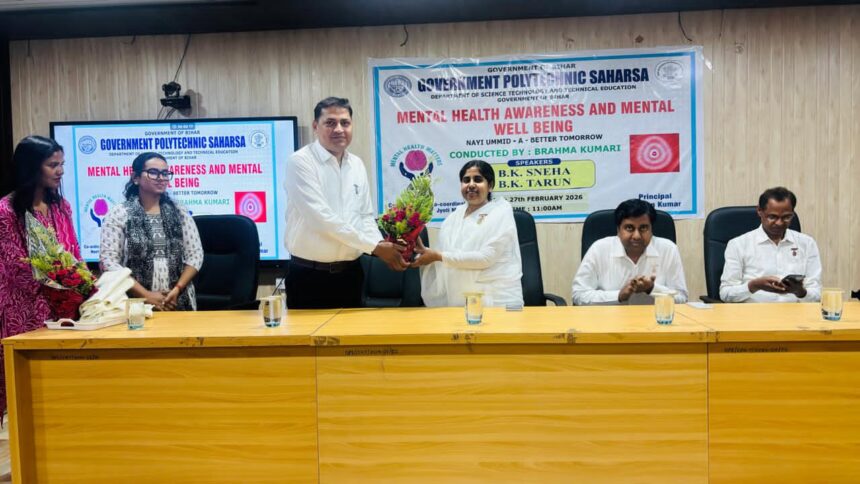 सहरसा, 27 फ़रवरी (हि.स.)। राजकीय पॉलिटेक्निक में विज्ञान, प्रौद्योगिकी एवं तकनीकी शिक्षा विभाग, बिहार सरकार के तत्वावधान में मेन्टल हेल्थ एवरनेस एंड मेन्टल वेल बीयिग विषय पर एक महत्वपूर्ण जागरूकता कार्यक्रम का आयोजन संस्थान के सेमिनार हॉल में किया गया। कार्यक्रम का मुख्य उद्देश्य छात्र-छात्राओं में मानसिक स्वास्थ्य के प्रति जागरूकता बढ़ाना तथा उन्हें सकारात्मक एवं संतुलित जीवन के लिए प्रेरित करना था।