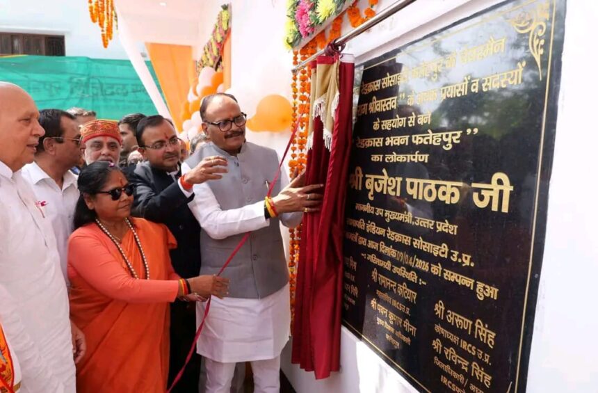 फतेहपुर, 09 अप्रैल (हि.स.)। उत्तर प्रदेश के फतेहपुर जिले में गुरुवार को जिला अस्पताल के टी.बी. अस्पताल स्थित परिसर में नवनिर्मित रेडक्रास भवन का लोकार्पण मुख्य अतिथि उपमुख्यमंत्री व इंडियन रेडक्रास सोसाइटी सभापति ब्रजेश पाठक द्वारा फीता काटकर किया गया। मुख्य अतिथि ने रेडक्रास के संस्थापक हेनरी डुनेन्ट के चित्रों में माल्यार्पण कर कार्यक्रम का शुभारंभ किया।