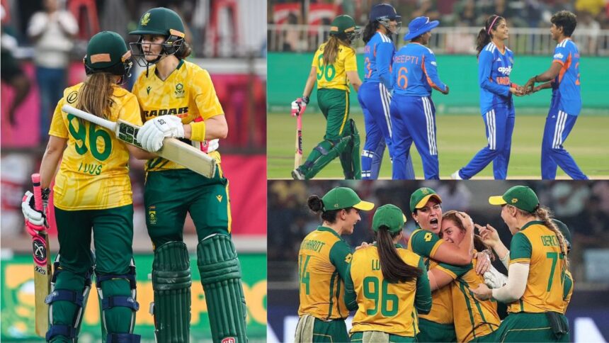 भारतीय टीम को पहली सफलता श्रेयांका पाटिल Patil ने दिलाई, जिन्होंने दोनों सेट बल्लेबाजों को आउट किया। हालांकि तब तक मैच पूरी तरह दक्षिण अफ्रीका के पक्ष में झुक चुका था। इसके बाद तजमिन ब्रिट्स (नाबाद 20) और एनेरी डेर्कसेन (नाबाद 12) ने टीम को 17 गेंद शेष रहते जीत दिला दी।