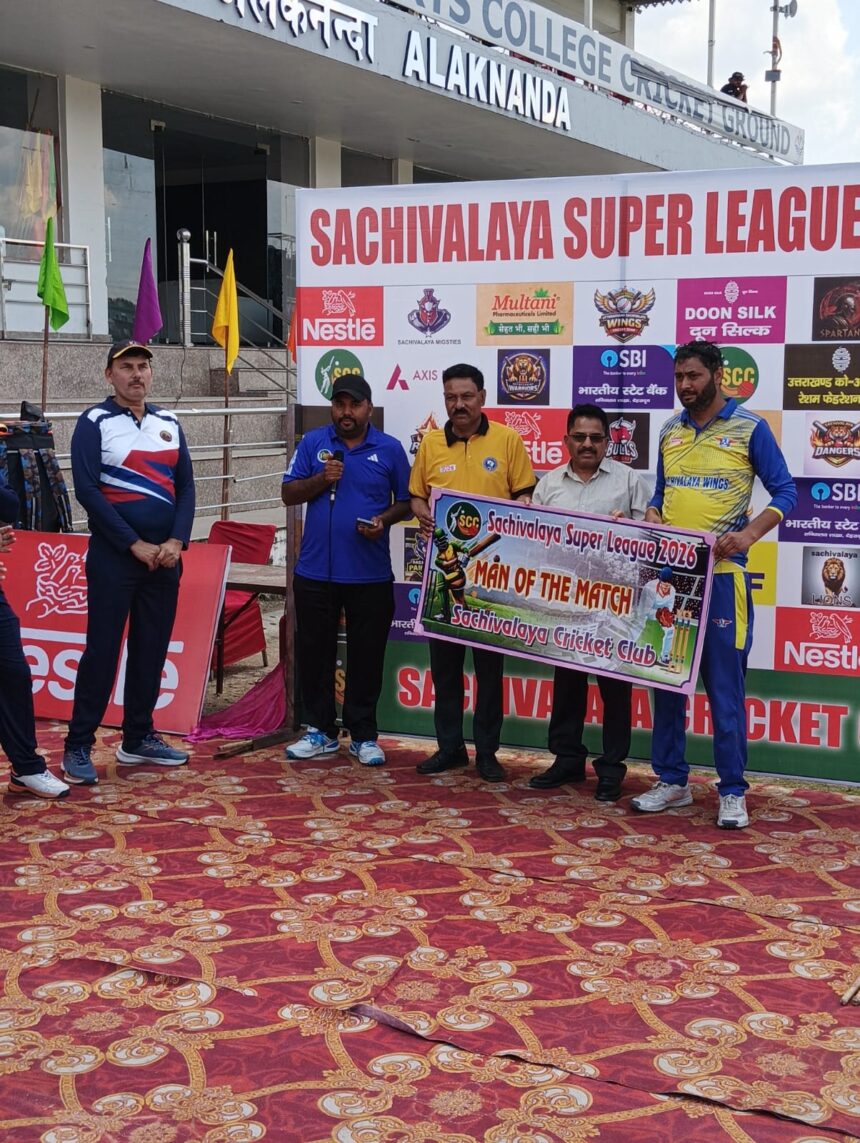 देहरादून, 05 अप्रैल (हि.स.)। देहरादून के रायपुर स्थित महाराणा प्रताप क्रिकेट ग्राउंड में शनिवार को सचिवालय सुपर लीग 2026 के दो मैच खेले गए। पहले मैच में सचिवालय विंग्स और दूसरे मैच में सचिवालय सुपर किंग्स ने जीत दर्ज की।
