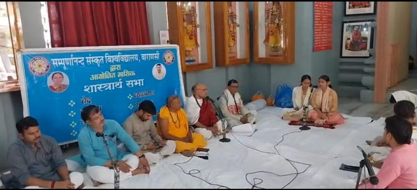 वाराणसी, 15 अप्रैल (हि.स.)। उत्तर प्रदेश के वाराणसी स्थित सम्पूर्णानन्द संस्कृत विश्वविद्यालय परिसर के वाग्देवी मंदिर मंडप में व्याकरण विभाग के तत्वावधान में बुधवार को मासिक शास्त्रार्थ सभा का आयोजन किया गया। सभा का शुभारंभ विश्वविद्यालय के कुलपति प्रो. बिहारी लाल शर्मा ने किया।