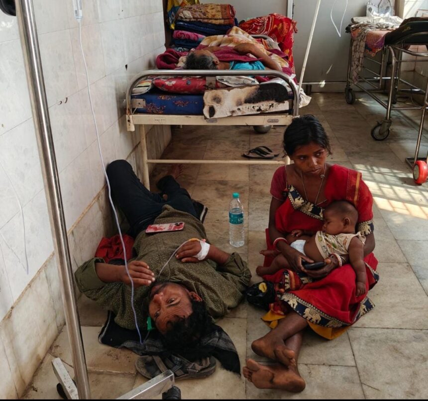 इमरजेंसी वार्ड की स्थिति भी चिंताजनक पाई गई। बेड की कमी के कारण कई मरीजों को जमीन पर लेटकर इलाज कराना पड़ रहा है। कुछ मरीजों को फर्श पर ही सलाइन चढ़ाया जा रहा था, जिससे संक्रमण फैलने का खतरा बना हुआ है।