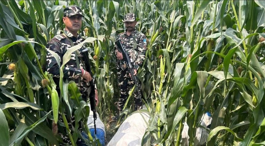जानकारी के अनुसार एसएसबी की टीम ने गुप्त सूचना के आधार पर सीमावर्ती इलाके में छापेमारी की, जहां तस्करों द्वारा मक्का के खेत में छुपाकर रखे गए 263 किलोग्राम गांजा को जब्त किया गया।