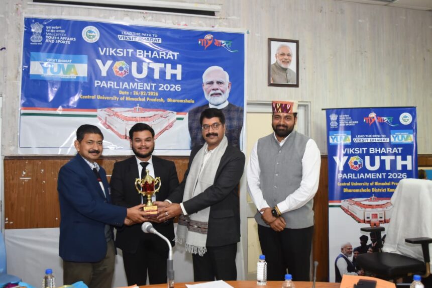धर्मशाला, 26 फ़रवरी (हि.स.)। केंद्रीय विश्वविद्यालय हिमाचल प्रदेश के धर्मशाला परिसर में वीरवार को विकसित भारत युवा संसद व युवा कनेक्ट-2026 कार्यक्रम का जिला स्तरीय आयोजन किया गया। कार्यक्रम में मुख्य अतिथि के रूप में प्रदीप कुमार, डीन शिक्षाविद, केंद्रीय विश्वविद्यालय तथा जिला लोक संपर्क अधिकारी विनय शर्मा मौजूद रहे। कार्यक्रम में मुख्य अतिथि प्रदीप कुमार एवं विनय शर्मा तथा विशिष्ट अतिथियों ने युवाओं को संबोधित करते हुए कहा कि विकसित भारत के निर्माण में युवाओं की सक्रिय भागीदारी अत्यंत आवश्यक है। उन्होंने युवाओं को सकारात्मक सोच, नवाचार, सामाजिक उत्तरदायित्व और नेतृत्व क्षमता विकसित करने के लिए प्रेरित किया।