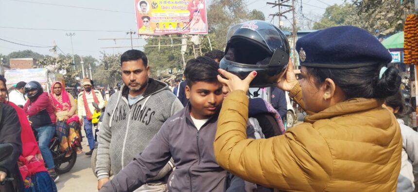 बक्सर, 16 जनवरी (हि.स.)। सड़क सुरक्षा माह के तहत शुक्रवार को परिवहन विभाग और स्थानीय पुलिस ने संयुक्त रूप से एक सराहनीय ‘रोको-टोको’ अभियान चलाया। शहर की मुख्य पुलिस चौकी पर आयोजित इस अभियान में चालान और दंड की जगह प्रेम, समझाइश और जागरूकता को प्राथमिकता दी गई। बिना हेलमेट दोपहिया वाहन चला रहे लोगों को जब महिला पुलिस अधिकारी ने रोका, तो वे चालान के भय से घबरा गए। लेकिन पुलिस का बदला हुआ व्यवहार देख सभी चकित रह गए।