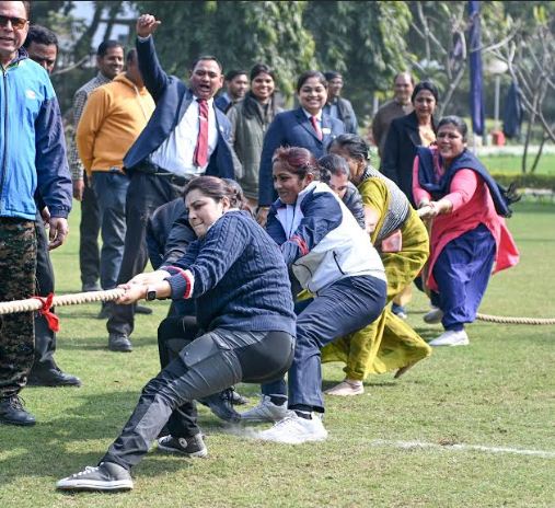 लखनऊ, 29 जनवरी (हि.स.)। उत्तर प्रदेश जन भवन में 24 दिसंबर 2025 से चल रही परम्परागत खेल प्रतियोगिताओं के समापन दिवस पर महिला एवं पुरुष वर्ग में रस्साकशी प्रतियोगिता के फाइनल मुकाबलों का आयोजन किया गया।