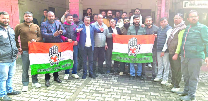 हरिद्वार, 29 जनवरी (हि.स.)। यूथ कांग्रेस के महानगर कार्यकारी अध्यक्ष विशाल प्रधान के नेतृत्व और वरिष्ठ कांग्रेस नेता सोम त्यागी व मनोज सैनी के संयोजन में प्रदेश में बिगड़ती कानून-व्यवस्था एवं बढ़ती आपराधिक घटनाओं को लेकर नगर मजिस्ट्रेट कार्यालय पर यूथ कांग्रेस पदाधिकारियों और कार्यकर्ताओं ने जोरदार हल्ला बोलते हुए प्रदर्शन कर प्रदेश में राष्ट्रपति शासन लगाने की माुंग को लेकर राष्ट्रपति को ज्ञापन प्रेषित किया।