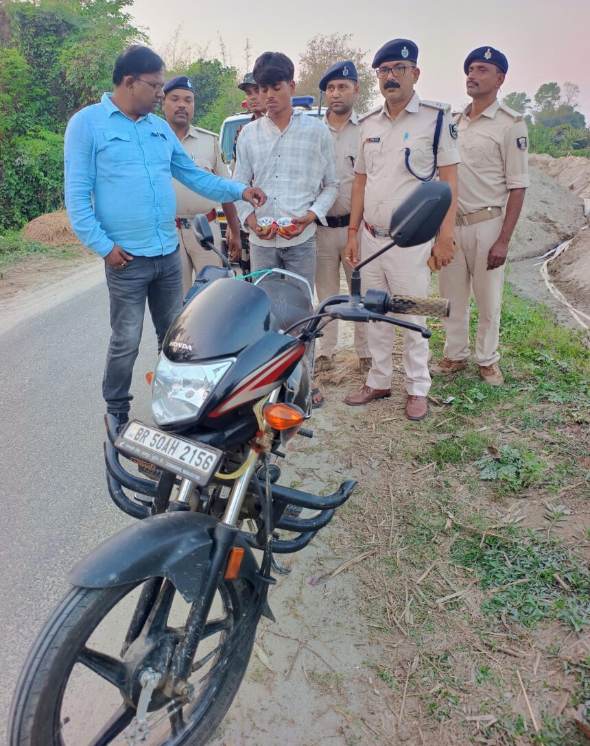 सुपौल, 24 मार्च (हि.स.)। जिले के भीमपुर पुलिस टीम ने मंगलवार की शाम गुप्त सूचना के आधार पर थाना क्षेत्र के जीवछ पुर पंचायत के वार्ड दो श्थित रानी पट्टी नहर से 60 पुरिया में कुल 35 .86 ग्राम ब्राउन सुगर के साथ एक तस्कर को गिरफ्तार किया है । वही पुलिस ने मौके से एक बाइक BR 50 AH 2156 को भी जब्त कर थाना लाई है । गिरफ्तार तस्कर में थाना क्षेत्र के जीवछ पुर पंचायत के वार्ड नंबर चार निवासी मोहम्मद रोजित के 22 वर्षीय पुत्र मोहम्मद नसीम साफी बताया जा रहा है।