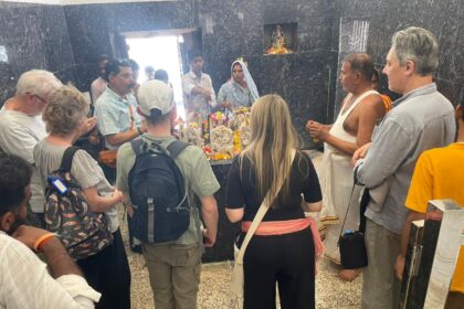 अशोकनगरः चंदेरी के शनिदेव मंदिर में विदेशी पर्यटकों ने की पूजा अर्चना