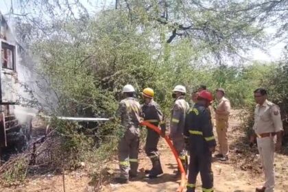 पुलिस चौकी के सामने खड़े ट्रक में लगी भीषण आग, मची अफरा-तफरी