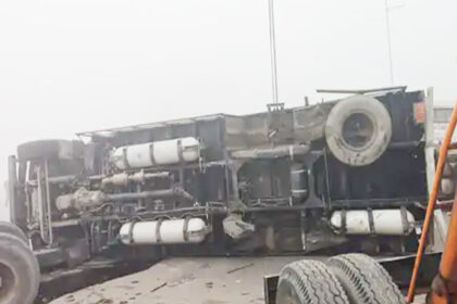 सोनीपत: घने कोहरे में ट्रक पलटा, दर्जनों वाहन टकराए
