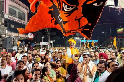 भोपालः हिंदू नववर्ष के स्वागत में प्रभात चौराहे पर लहराया विशाल भगवा झंडा, हुई भव्य आतिशबाजी