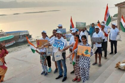 वाराणसी घाट पर गंगा सफाई से हुई स्वच्छता पखवाड़े की शुरुआत