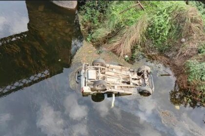 पुल की रेलिंग तोड़कर नदी में गिरी बोलेरो,चालक की मौत