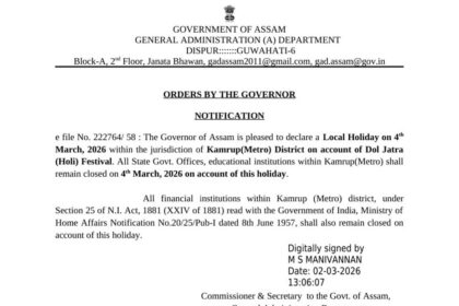 कामरूप (मेट्रो) प्रशासन ने की दौल यात्रा काे लेकर 4 मार्च को स्थानीय बंद की घोषणा