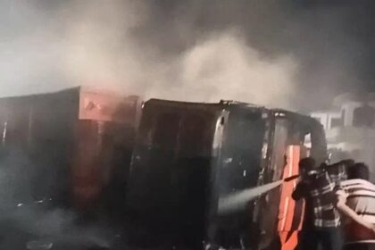 जयपुर-आगरा हाईवे पर कोयले से भरा ट्रेलर पलटा, आग में जिंदा जला ड्राइवर