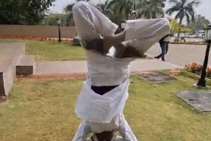 मप्र विधानसभा में कांग्रेस विधायक ने किया शीर्षासन, हर्ष फायरिंग पर एफआईआर को लेकर जताया विरोध