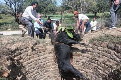 30 फीट गहरे कुएं में गिरा बैल, अग्निशमन टीम ने बचाई जान