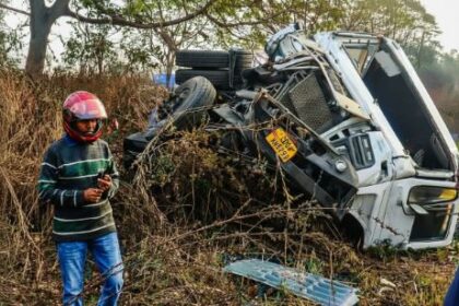 टिप्पर व ट्रक में हुई भिड़ंत, ट्रक सवार एक युवक की मौत, पांच घायल