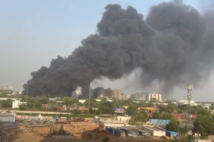 गुरुग्राम के खेड़की दौला में वेयरहाउस में लगी भीषण आग