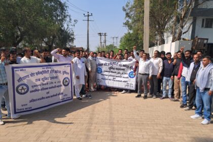 जींद : ऑनलाइन ट्रांसफर पॉलिसी के विरोध में बिजली निगम कर्मियों ने किया प्रदर्शन